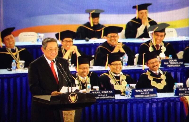 Presiden SBY sampaikan orasi ilmiah di sidang terbuka Dies Natalis ke-50 IPB di Kampus IPB (Foto by @SBYudhoyono)